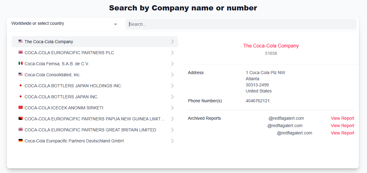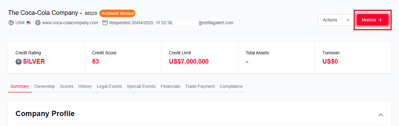 Use the search bar to search for the company you would like to monitor. If you know which country the company is based in, you can set the country using the drop down on the left to narrow your search.