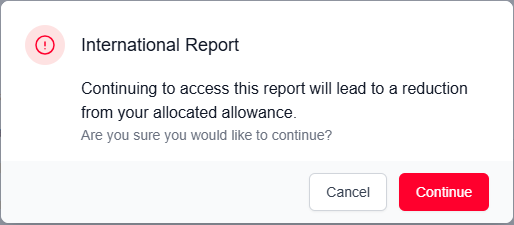 When you select a report to view, you will be asked if you are sure you would like to access this report because each report opened incurs a cost. If you have any queries about your credits, please contact your Account Manager or our Support team.