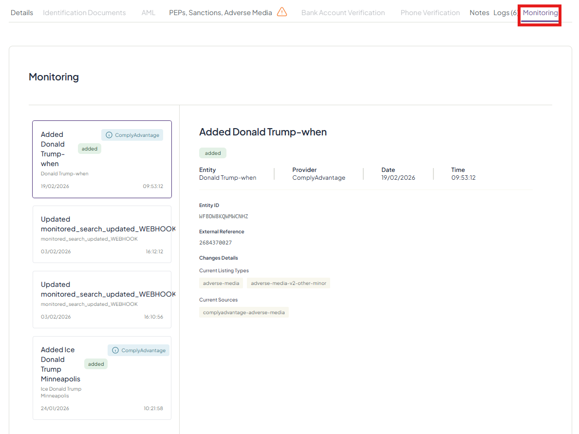 You can monitor changes on each individual check with monitoring enabled by clicking on the check from the list and going to 'Monitoring' on the right side of the options bar. Any changes will be documented here.